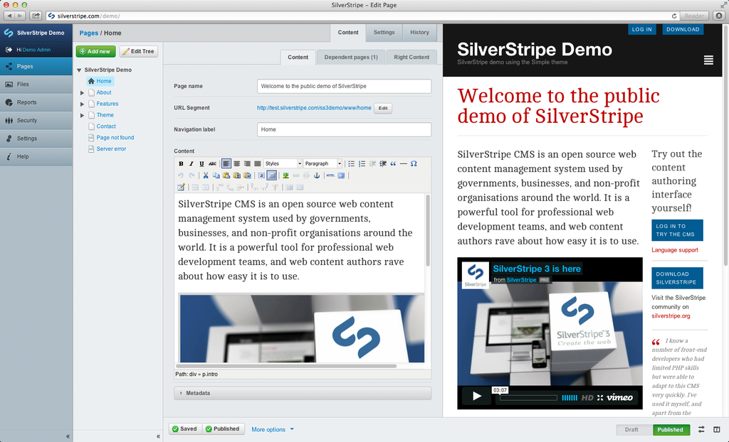SilverStripe es un CMS de código abierto que permite crear sitios, intranets y otras aplicaciones. Muchos sitios ligados a los negocios y distintas organizaciones ocupan este CMS, que también es relativamente simple de utilizar.